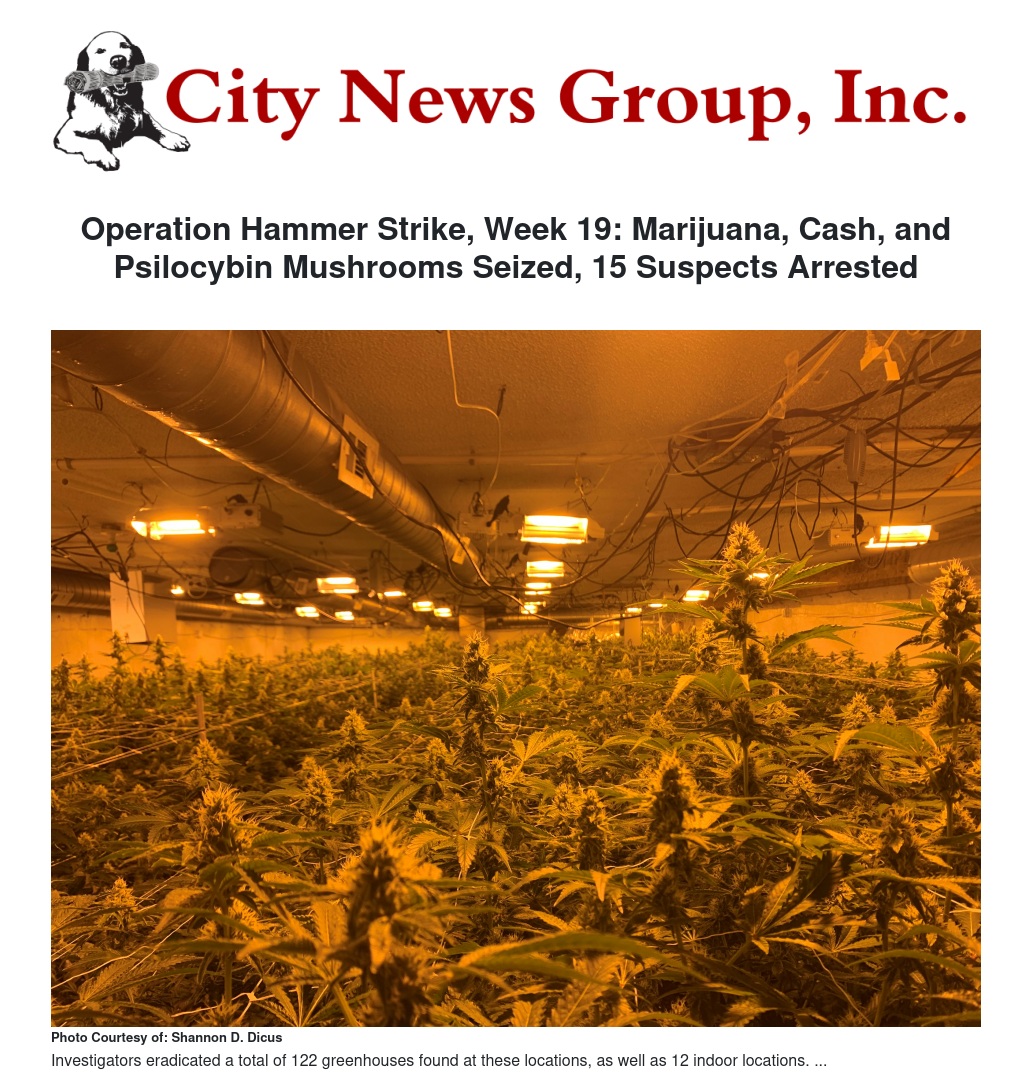 Operation Hammer Strike, Week 19: Marijuana, Cash, and Psilocybin Mushrooms Seized, 15 Suspects Arrested by Shannon D. Dicus - City News Group, Inc.