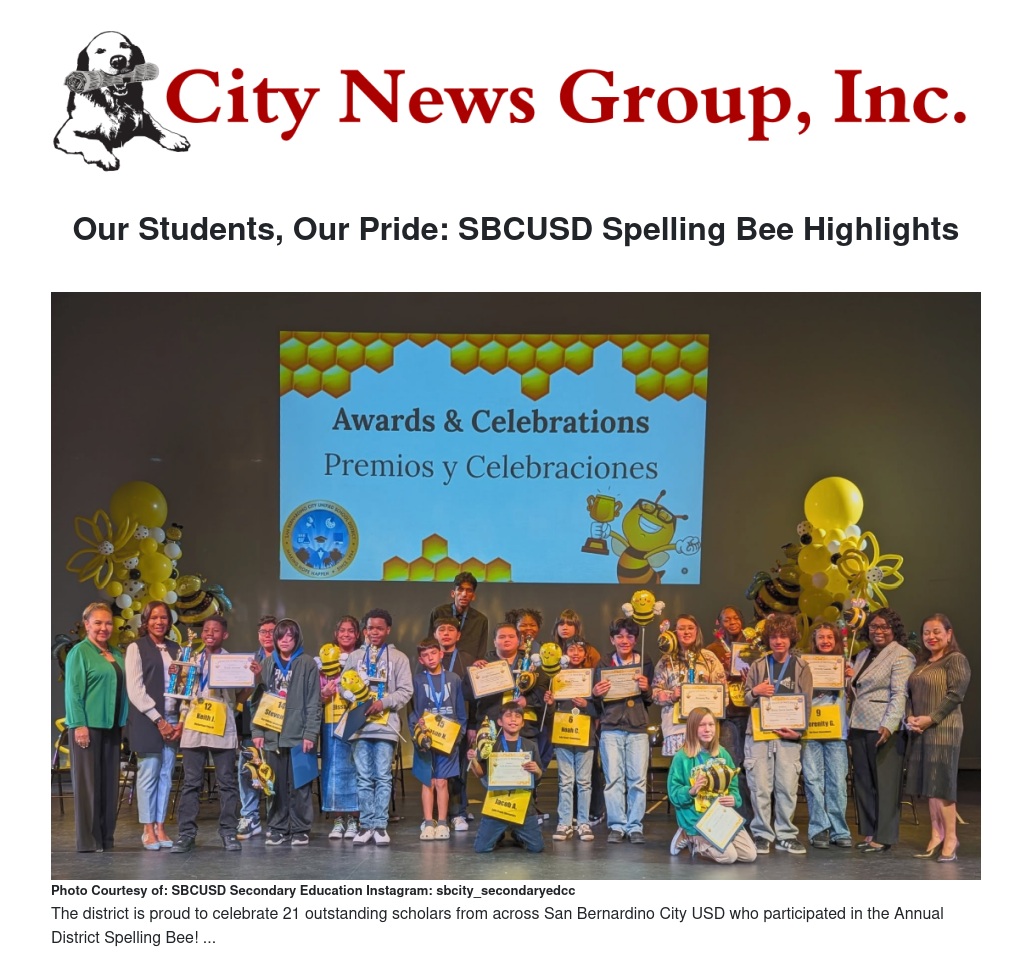 Our Students, Our Pride: SBCUSD Spelling Bee Highlights by Corina Borsuk - City News Group, Inc.