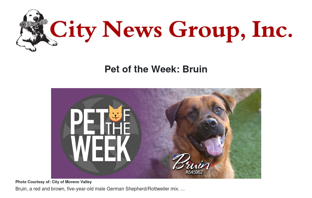 Pet of the Week: Bruin by William Cortez - City News Group, Inc.