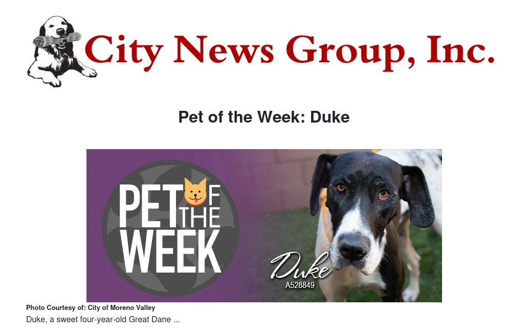 Pet of the Week: Duke by City of Moreno Valley - City News Group, Inc.