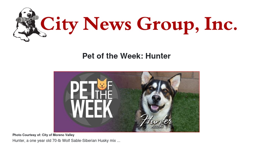 If you would like to make Hunter or any pet from the Moreno Valley Animal Shelter part of your family, please contact the Moreno Valley Animal Shelter at 951.413.3790 or visit www.moval.org/pets