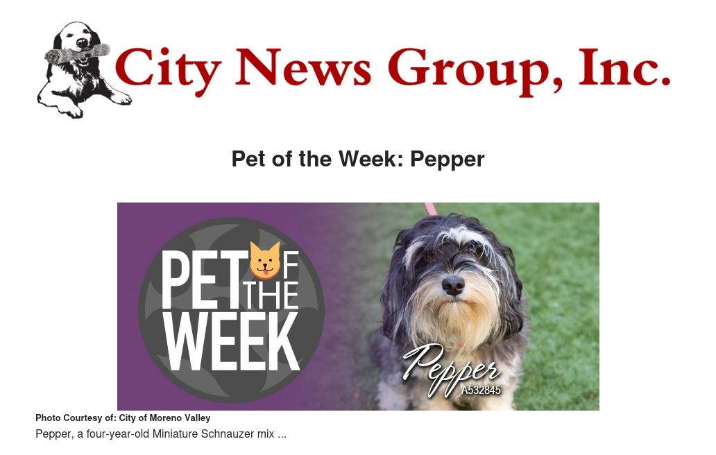 If you would like to make Pepper or any pet from the Moreno Valley Animal Shelter part of your family, please contact the Moreno Valley Animal Shelter at 951.413.3790 or visit www.moval.org/pets.