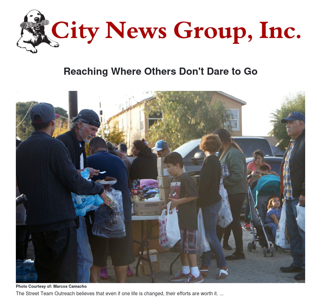 The Street Team Outreach, a group based out of Grand Terrace, Ca is a group of individuals with a burden for those lost in the surrounding communities and in need of basic necessities as well as the Gospel of Jesus Christ. The group currently has monthly outreaches scheduled on the second Saturday in which they gather items, donations, provisions, and a hot meal and venture out to the areas most people would double check that their doors were locked when driving through. This group of individuals has come to the realization that the less fortunate, homeless, victims of human trafficking and drug addicted members of the community still matter, and they need help. “Even if one person is helped by our efforts then it is all worth it,” says the team.