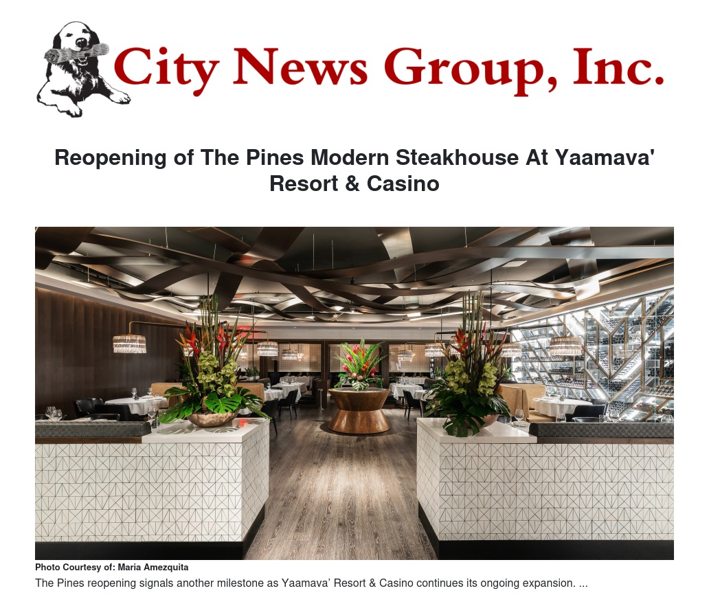 “The Pines Modern Steakhouse is a product of our love for the art of the ultimate epicurean experience with a focus on creating a remarkable experience for our guests,” said David Kopasz, Chief Operating Officer, Hospitality at Yaamava’ Resort & Casino at San Manuel. “In my two decades in the food and beverage industry, I’ve never been more excited or proud of a restaurant debut.”