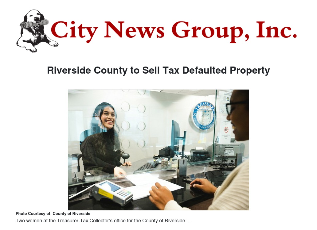Riverside County to Sell Tax Defaulted Property by William Redman - City News Group, Inc.