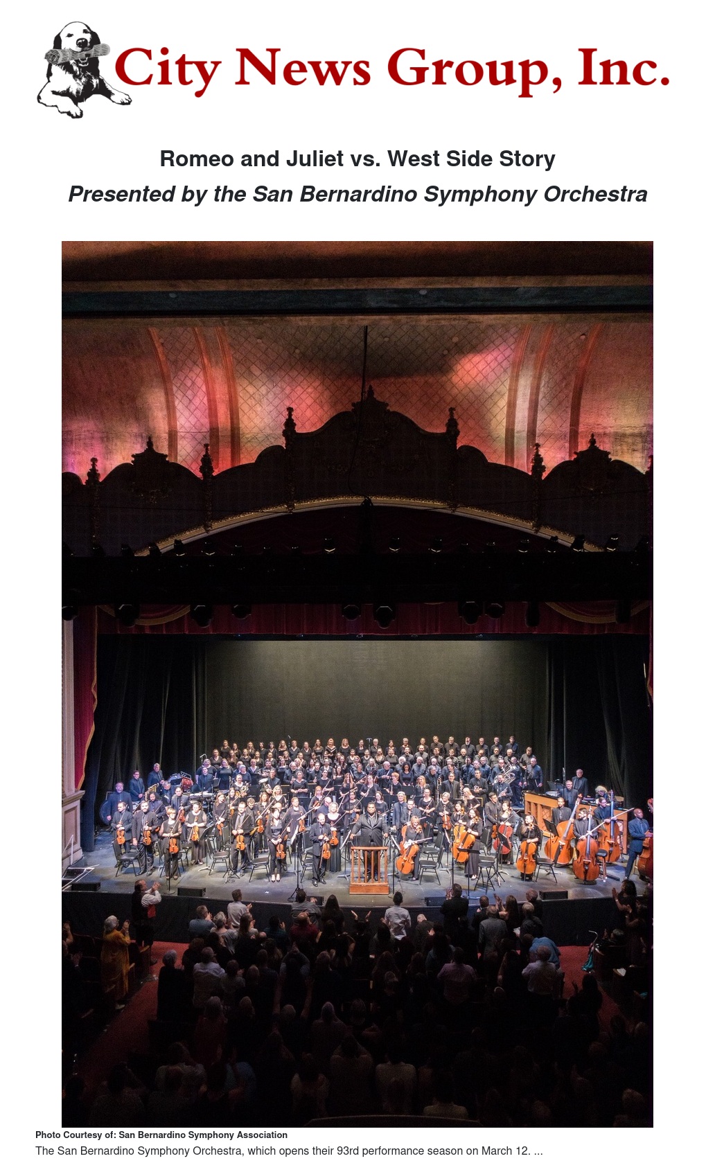 Romeo and Juliet vs. West Side Story by San Bernardino Symphony Association - City News Group, Inc.