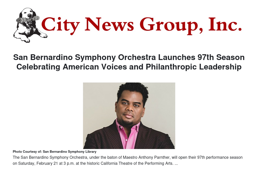 San Bernardino Symphony Orchestra Launches 97th Season Celebrating American Voices and Philanthropic Leadership by Anne L. Viricel - City News Group, Inc.