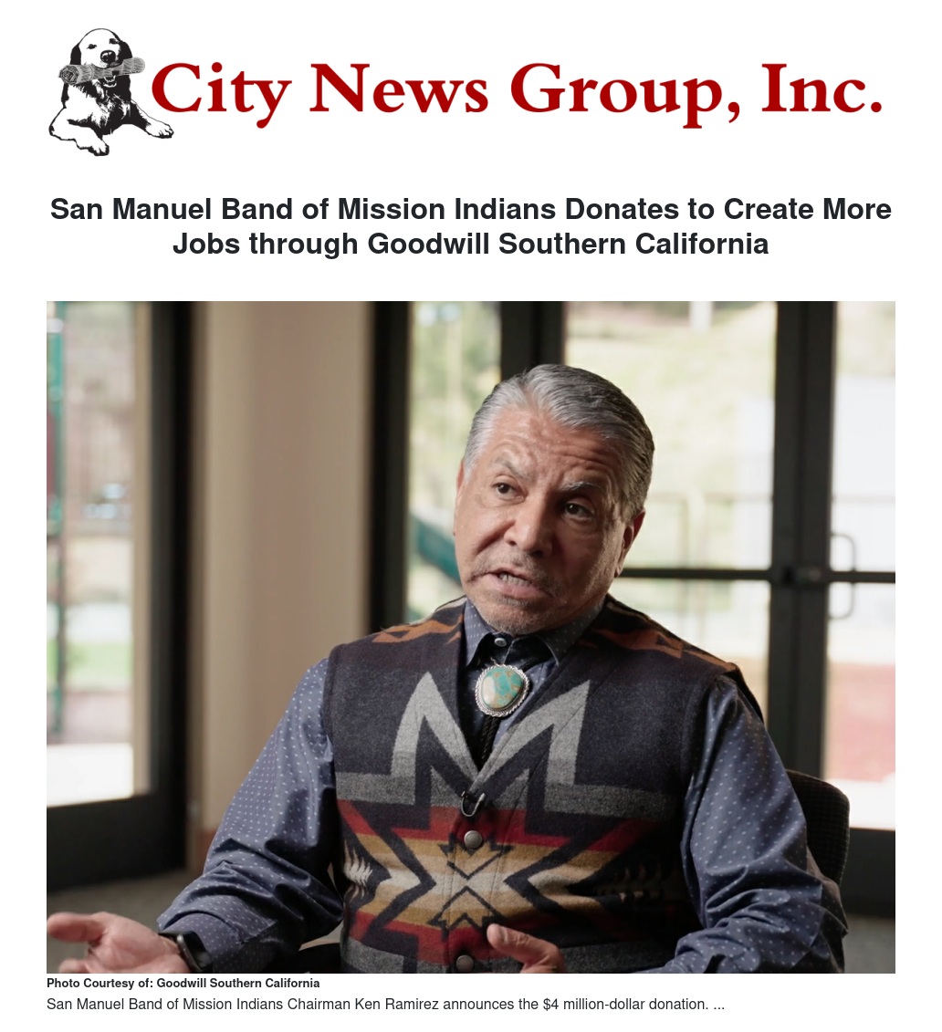 San Manuel Band of Mission Indians Donates to Create More Jobs through Goodwill Southern California by Jenna Brady - City News Group, Inc.
