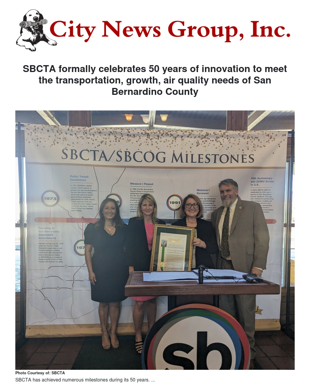 SBCTA formally celebrates 50 years of innovation to meet the transportation, growth, air quality needs of San Bernardino County by Steve Lambert - City News Group, Inc.