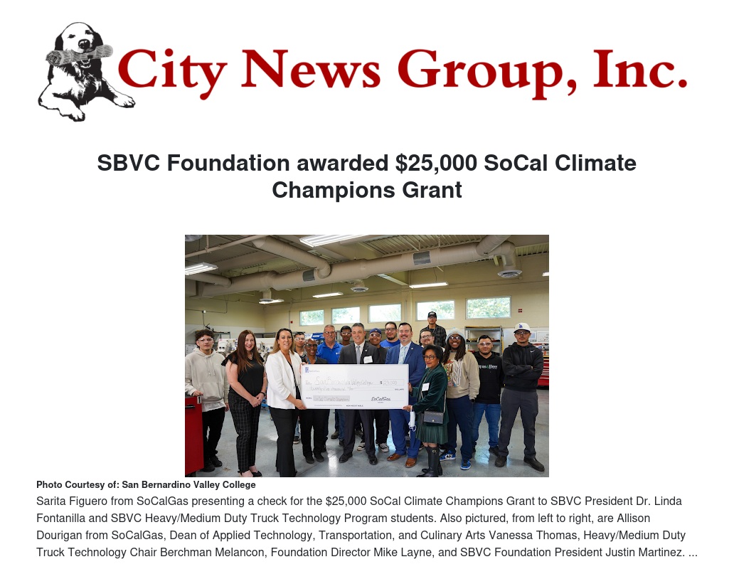 SBVC Foundation awarded $25,000 SoCal Climate Champions Grant by San Bernardino Valley College - City News Group, Inc.