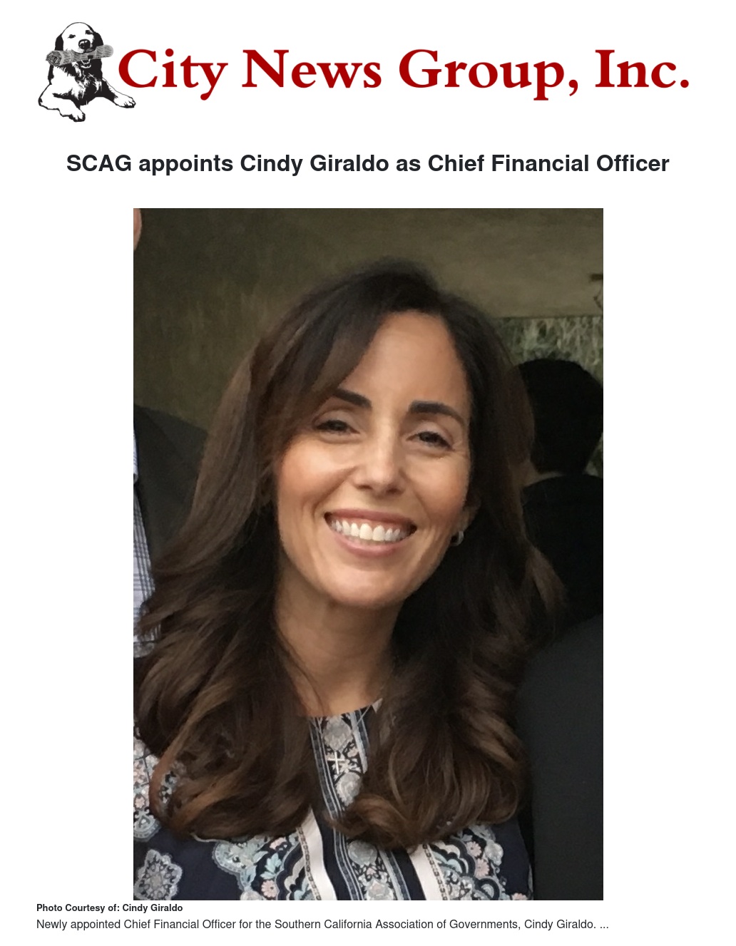 SCAG appoints Cindy Giraldo as Chief Financial Officer by Steve Lambert - City News Group, Inc.
