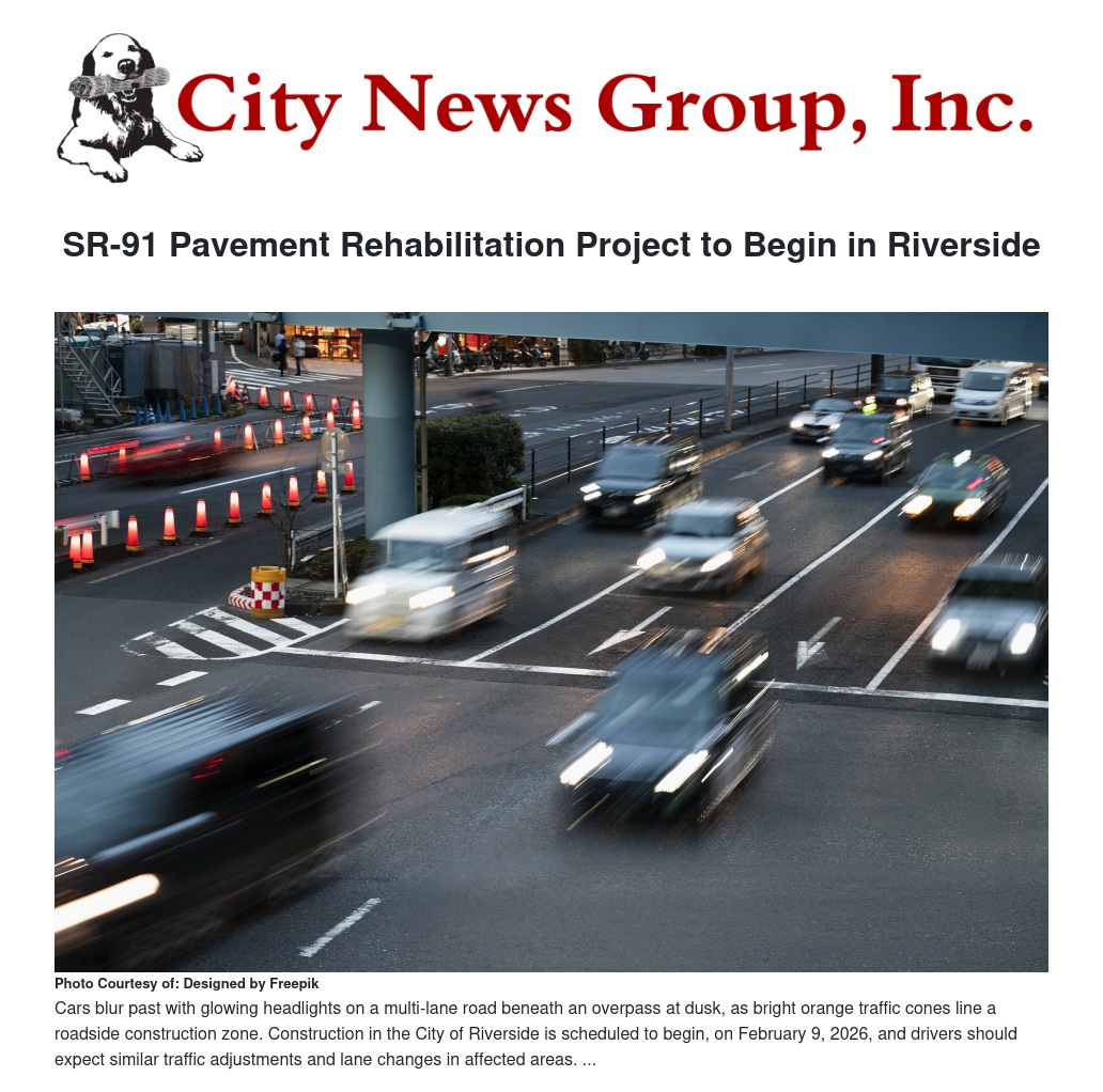SR-91 Pavement Rehabilitation Project to Begin in Riverside by Ruby Stephenson - City News Group, Inc.