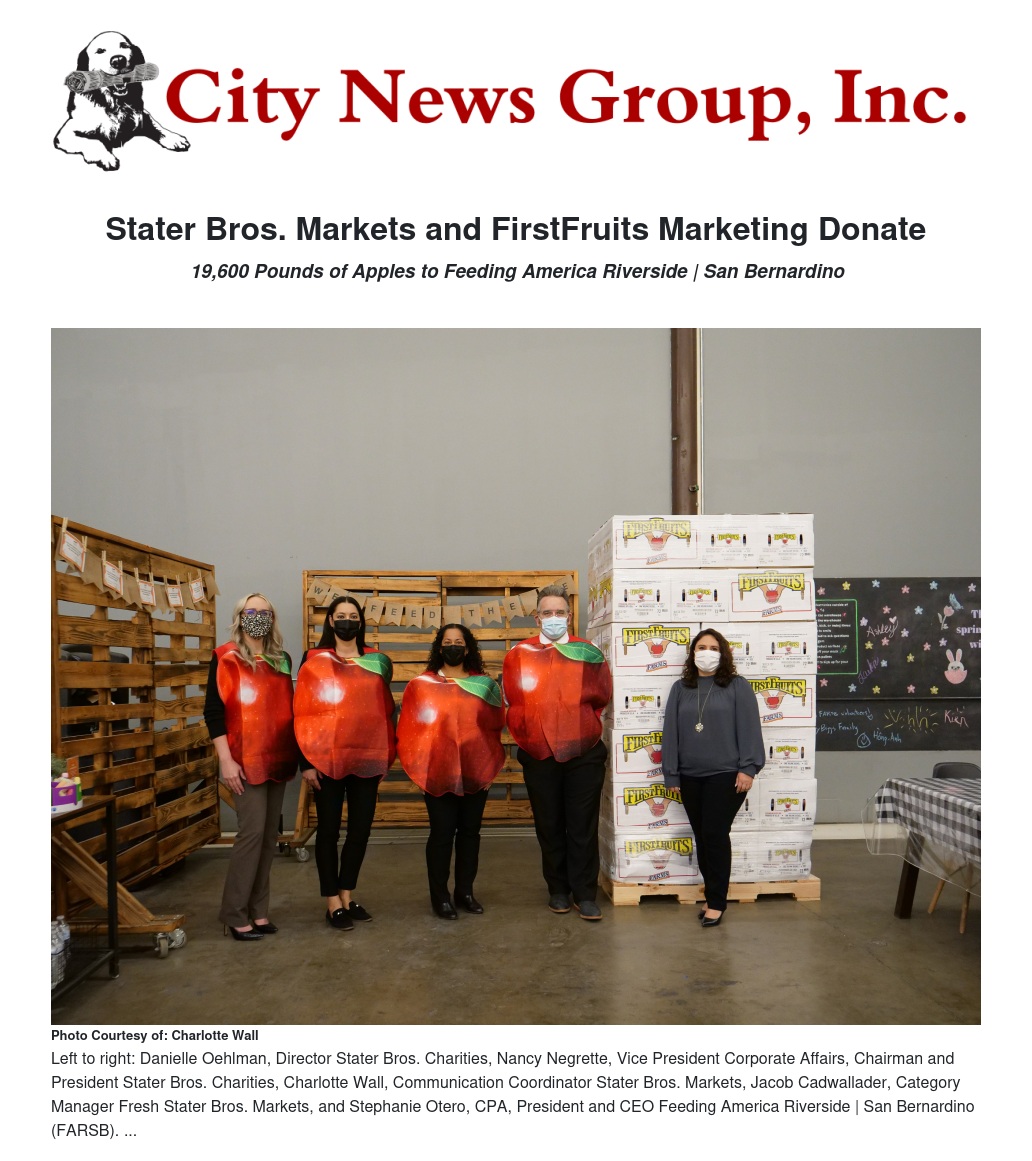 Stater Bros. Markets and FirstFruits Marketing Donate by Nancy Negrette - City News Group, Inc.