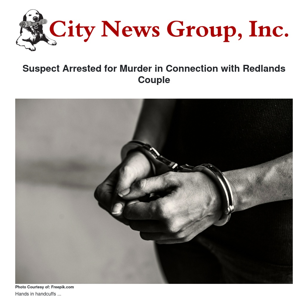 Suspect Arrested for Murder in Connection with Redlands Couple by Stella Pierce - City News Group, Inc.