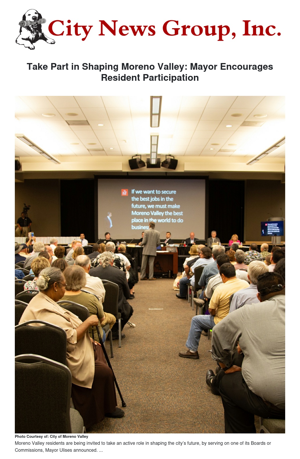 Take Part in Shaping Moreno Valley: Mayor Encourages Resident Participation by Ruby Stephenson - City News Group, Inc.