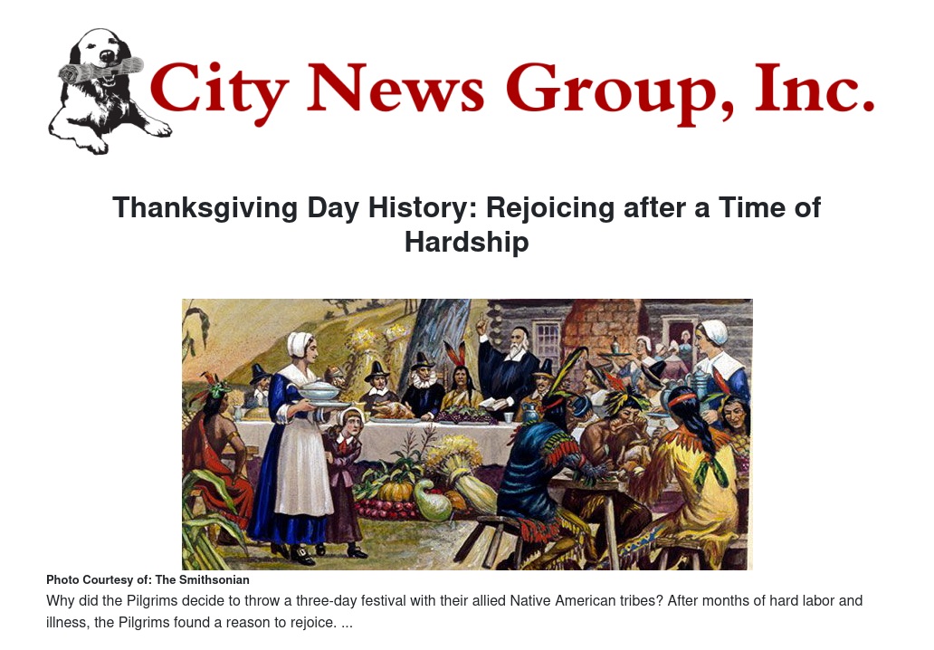 Thanksgiving Day History: Rejoicing after a Time of Hardship by Elena Macias - City News Group, Inc.