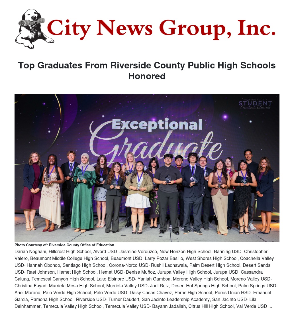 Top Graduates From Riverside County Public High Schools Honored by Ruby Stephenson - City News Group, Inc.