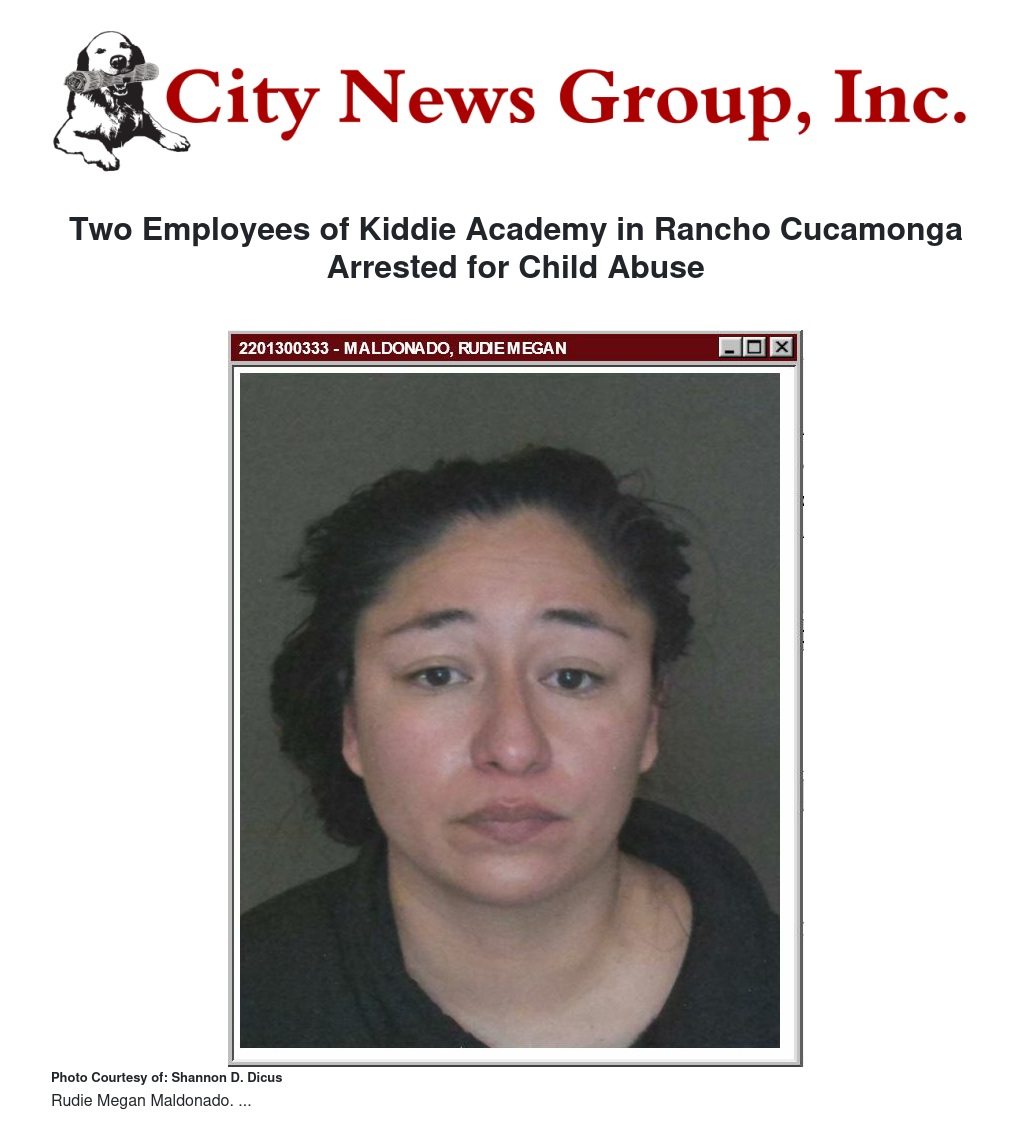 Two Employees of Kiddie Academy in Rancho Cucamonga Arrested for Child Abuse by Shannon D. Dicus - City News Group, Inc.