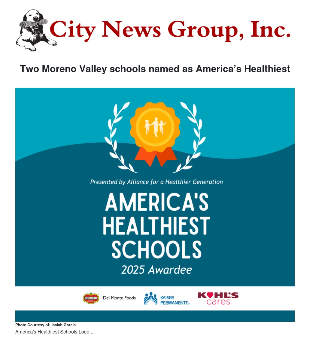 Schools are recognized in nine health-related topic areas. The Moreno Valley Unified School District is pleased to announce Chaparral Hills as the recipient of two topic area distinctions: “Increasing Family and Community Engagement,” and “Strengthening Social-Emotional Health and Learning.” Valley View High School earned the award for the topic “Cultivating Staff Well-Being,” an important category that does not go unnoticed by the school community.