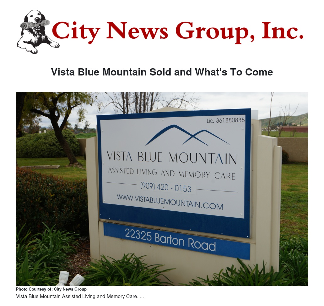 In the last few weeks, there has been news that the property located at 22325 Barton Road that housed the senior residents of Vista Blue Mountain has been sold. According to The Registry, a publication for real estate news for all Southern California, the property sold for $12 million, about $136,363 per unit.